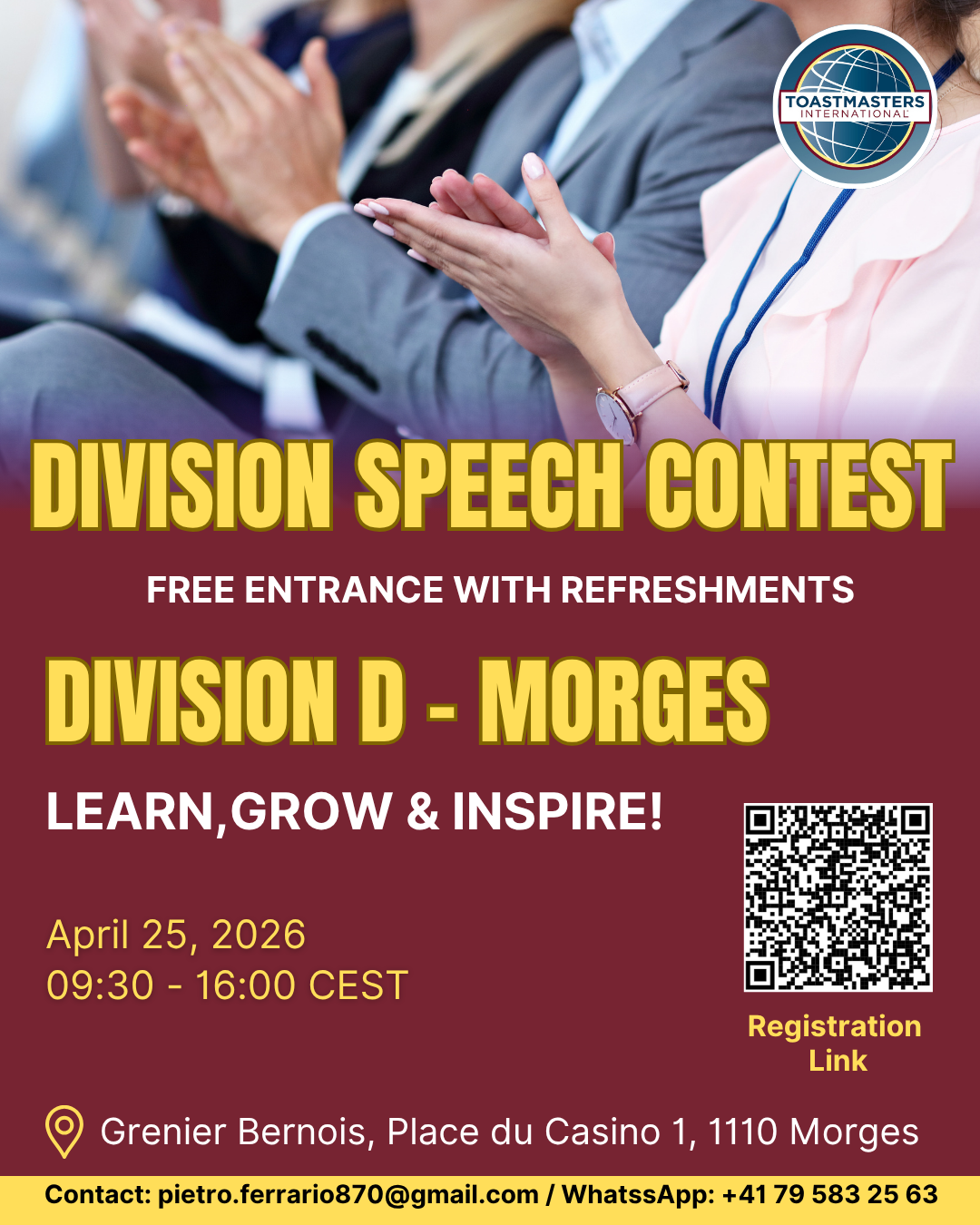 This website is designed to offer information about Toastmasters clubs and events in the French-speaking part of Switzerland.